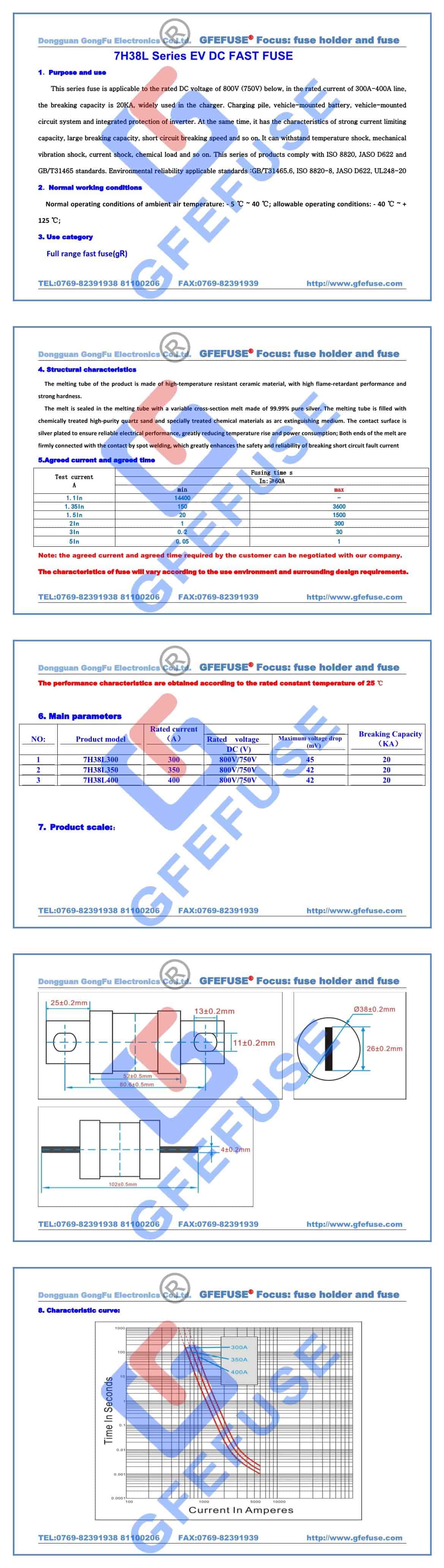 7H38L快速直流熔斷器(300A-400A)750V800V