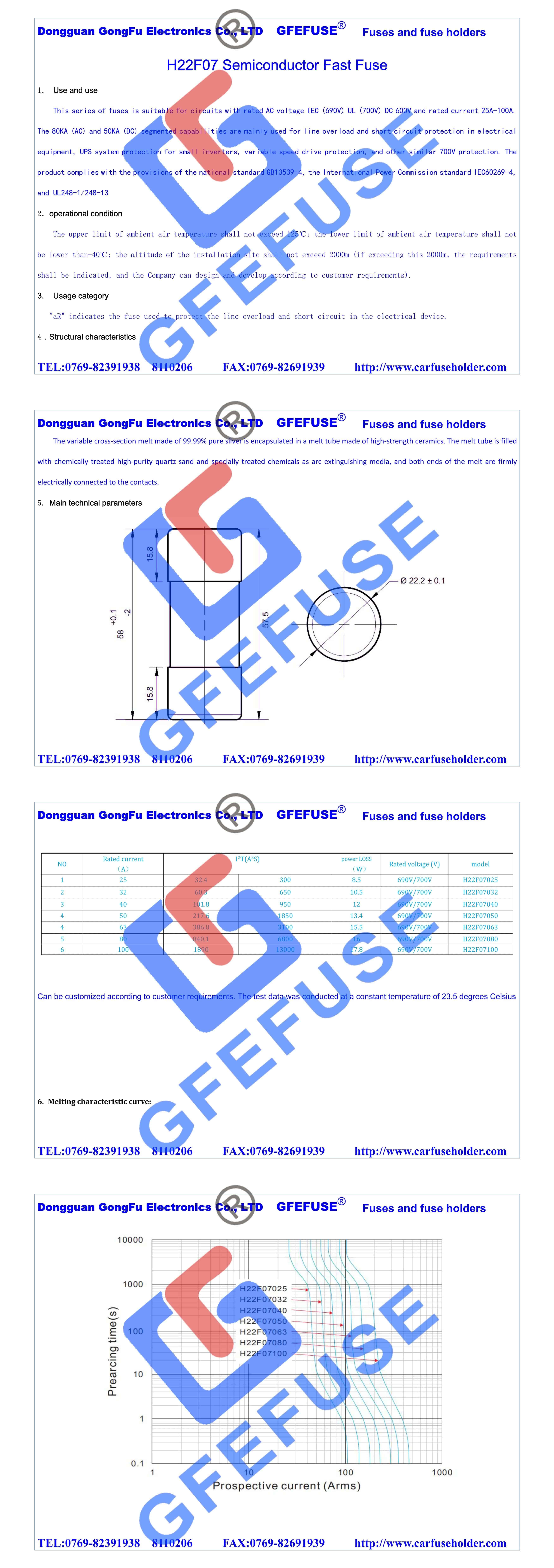 H22F07 25A-100A 快速熔斷器690V700V